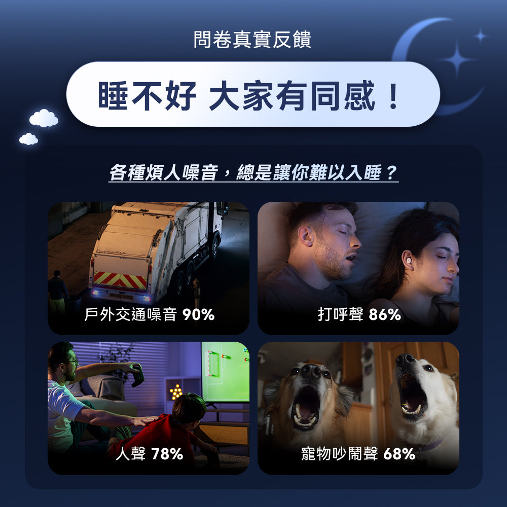 專為睡眠場景研發,過濾打呼、戶外交通、電器運轉等環境噪音